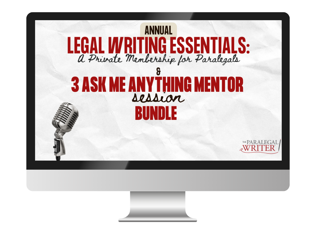 Get the Legal Writing Essentials Annual Membership plus three Ask Me Anything sessions with Jackie at a special discount. This bundle gives you a full year of ongoing support, expert insight, and practical tools to strengthen your legal writing without the overwhelm, including monthly expert sessions, resources, Q&As, and industry updates. On top of that, you will get three 20-minute AMA sessions with Jackie, a seasoned paralegal expert, where you can ask questions about career paths, goals, and writing challenges and get direct, personalized guidance to help you move forward with confidence.